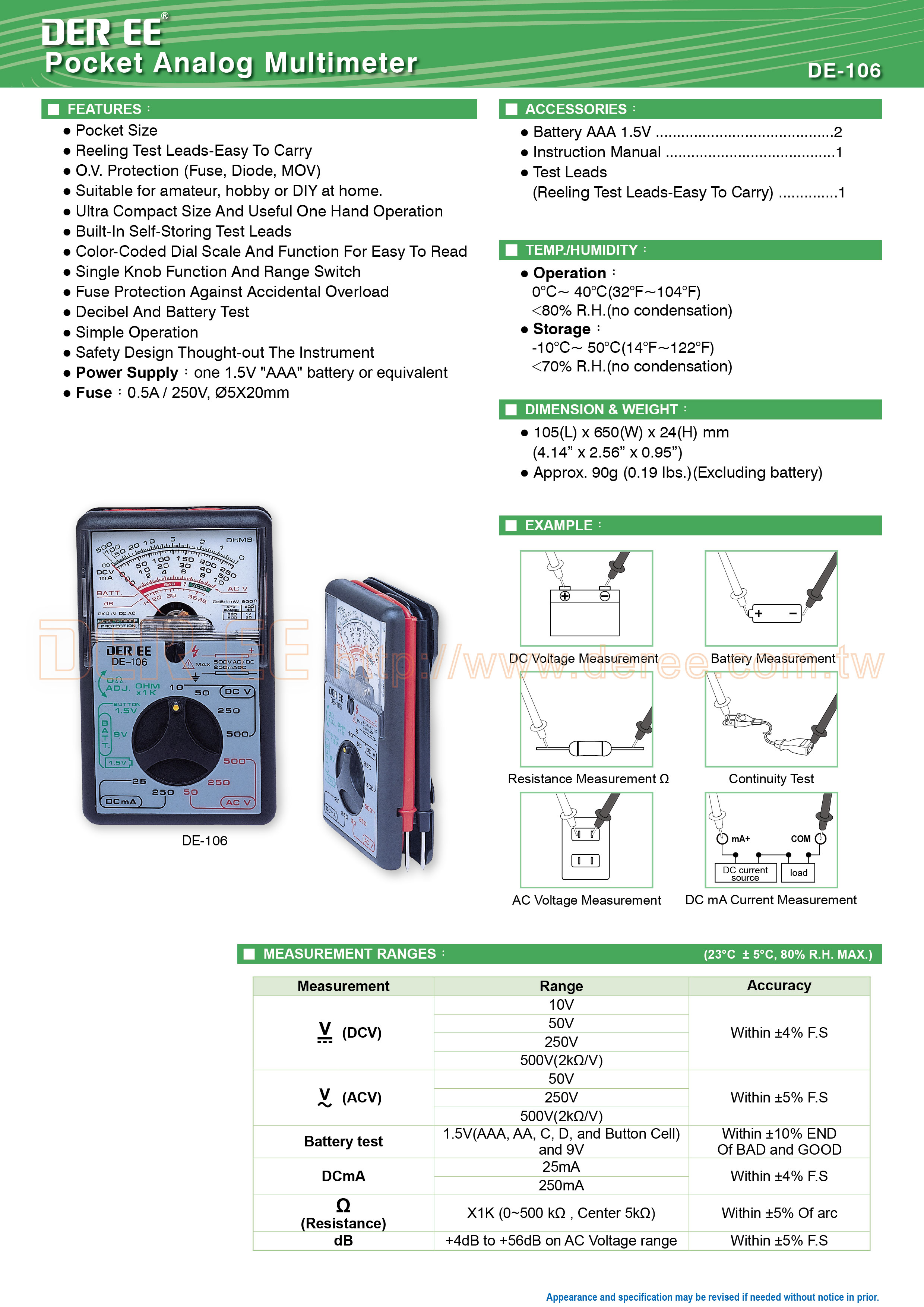 DE-106 Карманный аналоговый мультиметр